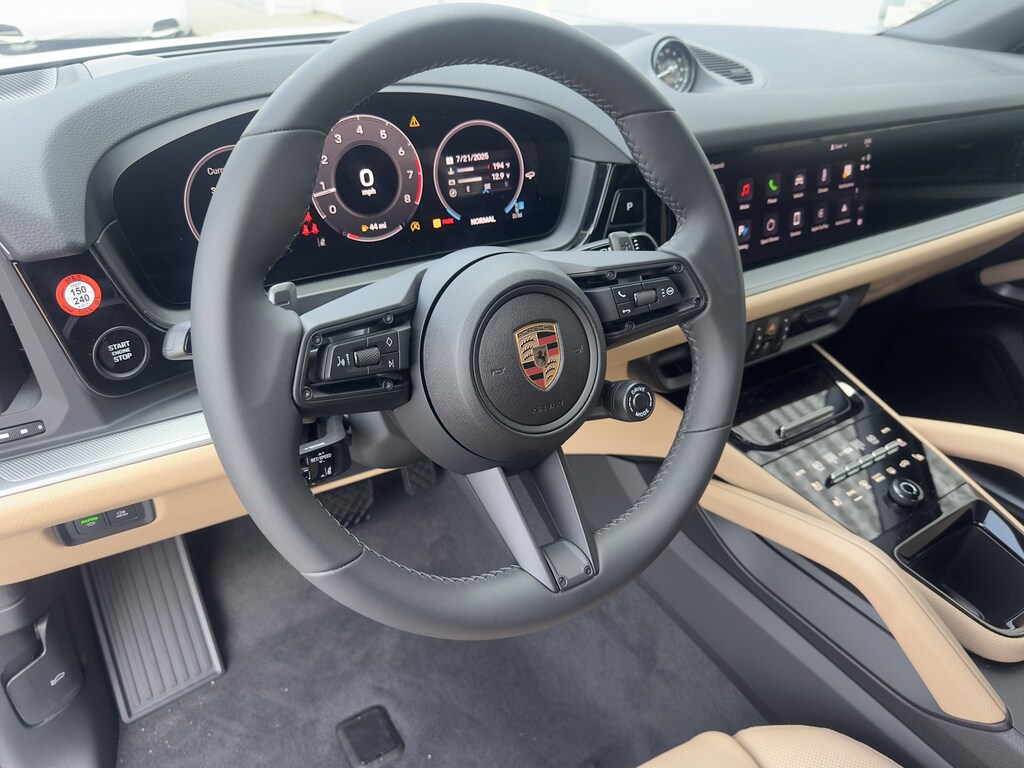This 2025 Porsche Cayenne Coupe in Carrara White Metallic is a Porsche Approved Certified Pre-Owned vehicle that features a sophisticated interior in Black with Mojave Beige accents. Originally carrying an MSRP of $114,235, this highly optioned Coupe comes equipped with the Premium Package Plus, Technology Package, and Adaptive Air Suspension for a superior driving experience. Luxury highlights include 18-way Adaptive Sport Seats with ventilation, 21-inch RS Spyder Design wheels, and a BOSE® Surround Sound System. Professionally maintained and backed by an unlimited mileage CPO factory warranty, this Cayenne Coupe offers an exceptional blend of performance and peace of mind
